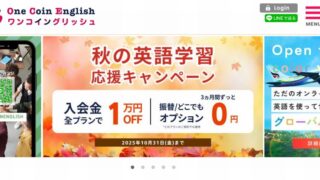 英会話 ワンコイングリッシュにクーポンやキャンペーンはコレをチェックだ!! ワンコイングリッシュは、東京・横浜に10校舎+オンラインで1レッスン500円(税込550円)からの格安英会話レッスンできる英会話スクールです。でもどうせなら、少しでもお得に始めたいですよね。クーポンやキャンペーンはないの?と思っているなら、... 2025.01.09 2025.10.08 英会話英語教材・講座